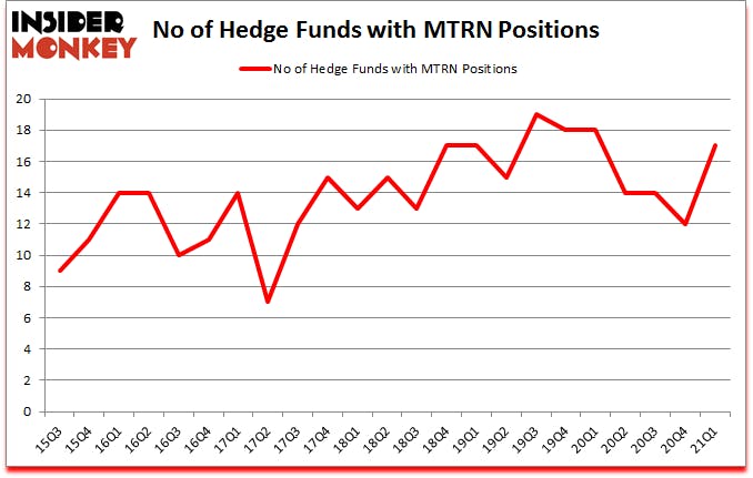 At the end of the first quarter, a total of 17 of the hedge funds tracked by Insider Monkey were long this stock, a change of 42% from the previous quarter. On the other hand, there were a total of 18 hedge funds with a bullish position in MTRN a year ago. With the smart money’s capital changing hands, there exists a select group of noteworthy hedge fund managers who were boosting their stakes meaningfully (or already accumulated large positions).