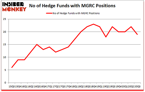 At third quarter’s end, a total of 19 of the hedge funds tracked by Insider Monkey were long this stock, a change of -14% from one quarter earlier. The graph below displays the number of hedge funds with bullish position in MGRC over the last 21 quarters. With hedgies’ capital changing hands, there exists a few notable hedge fund managers who were increasing their holdings substantially (or already accumulated large positions).