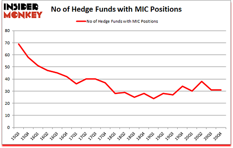 At the end of December, a total of 31 of the hedge funds tracked by Insider Monkey held long positions in this stock, a change of 0% from one quarter earlier. The graph below displays the number of hedge funds with bullish position in MIC over the last 22 quarters. With hedge funds’ positions undergoing their usual ebb and flow, there exists a select group of notable hedge fund managers who were increasing their stakes meaningfully (or already accumulated large positions).