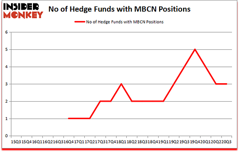 At the end of September, a total of 3 of the hedge funds tracked by Insider Monkey were bullish on this stock, a change of 0% from one quarter earlier. The graph below displays the number of hedge funds with bullish position in MBCN over the last 21 quarters. So, let’s check out which hedge funds were among the top holders of the stock and which hedge funds were making big moves.