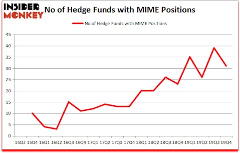 Heading into the first quarter of 2020, a total of 31 of the hedge funds tracked by Insider Monkey held long positions in this stock, a change of -21% from one quarter earlier. On the other hand, there were a total of 23 hedge funds with a bullish position in MIME a year ago. With hedge funds’ capital changing hands, there exists an “upper tier” of noteworthy hedge fund managers who were increasing their holdings significantly (or already accumulated large positions).