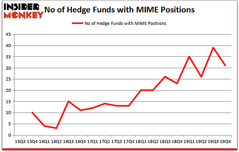 Heading into the first quarter of 2020, a total of 31 of the hedge funds tracked by Insider Monkey held long positions in this stock, a change of -21% from one quarter earlier. On the other hand, there were a total of 23 hedge funds with a bullish position in MIME a year ago. With hedge funds’ capital changing hands, there exists an “upper tier” of noteworthy hedge fund managers who were increasing their holdings significantly (or already accumulated large positions).