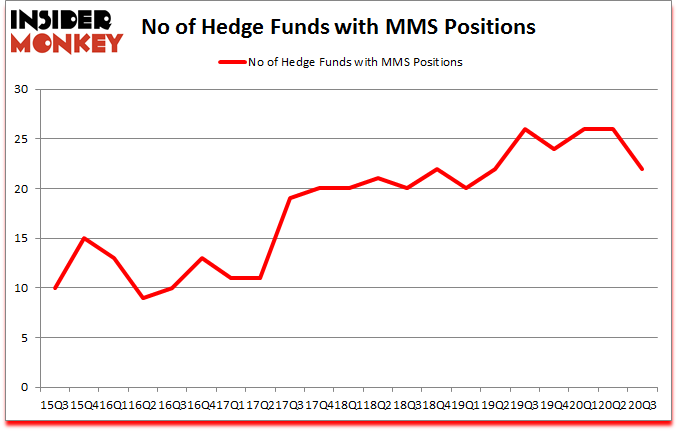 At the end of the third quarter, a total of 22 of the hedge funds tracked by Insider Monkey were long this stock, a change of -15% from the second quarter of 2020. On the other hand, there were a total of 26 hedge funds with a bullish position in MMS a year ago. With hedge funds’ capital changing hands, there exists a select group of noteworthy hedge fund managers who were upping their stakes significantly (or already accumulated large positions).