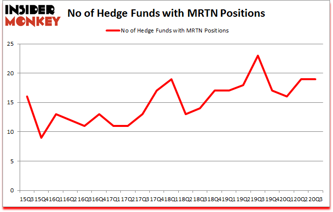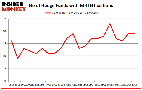 At the end of the third quarter, a total of 19 of the hedge funds tracked by Insider Monkey held long positions in this stock, a change of 0% from one quarter earlier. The graph below displays the number of hedge funds with bullish position in MRTN over the last 21 quarters. So, let’s review which hedge funds were among the top holders of the stock and which hedge funds were making big moves.