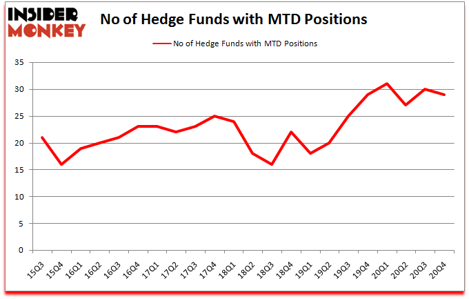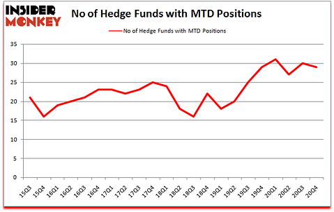 Is MTD stock a buy? Mettler-Toledo International Inc. (NYSE:MTD) was in 29 hedge funds’ portfolios at the end of the fourth quarter of 2020. The all time high for this statistic is 31. MTD has seen a decrease in support from the world’s most elite money managers recently. There were 30 hedge funds in our database with MTD positions at the end of the third quarter. Our calculations also showed that MTD isn’t among the 30 most popular stocks among hedge funds (click for Q4 rankings).