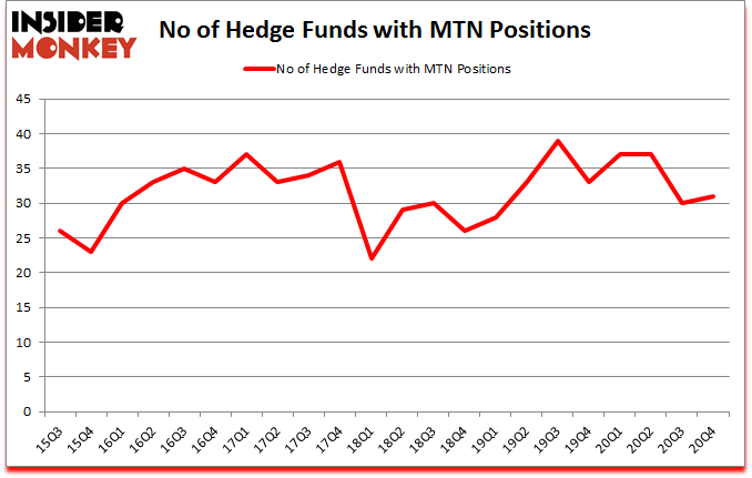 At fourth quarter’s end, a total of 31 of the hedge funds tracked by Insider Monkey were bullish on this stock, a change of 3% from the previous quarter. Below, you can check out the change in hedge fund sentiment towards MTN over the last 22 quarters. So, let’s check out which hedge funds were among the top holders of the stock and which hedge funds were making big moves.
