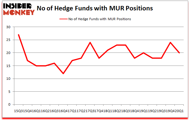 At Insider Monkey we scour multiple sources to uncover the next great investment idea. Cannabis stocks are roaring back in 2020, so we are checking out this under-the-radar stock. We go through lists like the 10 most profitable companies in the world to pick the best large-cap stocks to buy. Even though we recommend positions in only a tiny fraction of the companies we analyze, we check out as many stocks as we can. We read hedge fund investor letters and listen to stock pitches at hedge fund conferences. If you want to find out the best healthcare stock to buy right now, you can watch our latest hedge fund manager interview here. Now let’s take a gander at the recent hedge fund action regarding Murphy Oil Corporation (NYSE:MUR).