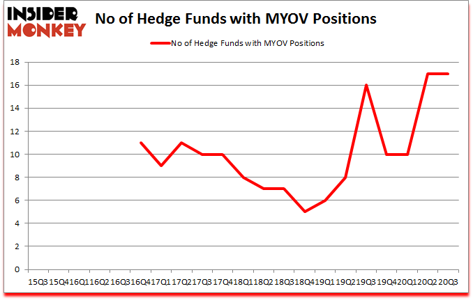 At the end of the third quarter, a total of 17 of the hedge funds tracked by Insider Monkey held long positions in this stock, a change of 0% from the second quarter of 2020. Below, you can check out the change in hedge fund sentiment towards MYOV over the last 21 quarters. So, let’s check out which hedge funds were among the top holders of the stock and which hedge funds were making big moves.