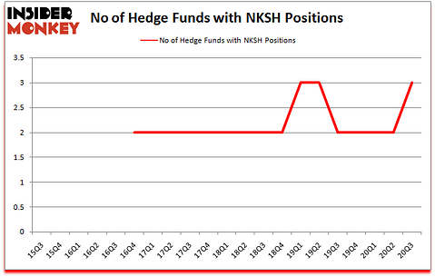 At third quarter’s end, a total of 3 of the hedge funds tracked by Insider Monkey were long this stock, a change of 50% from the previous quarter. Below, you can check out the change in hedge fund sentiment towards NKSH over the last 21 quarters. So, let’s review which hedge funds were among the top holders of the stock and which hedge funds were making big moves.