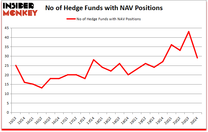 Is NAV stock a buy? Hedge funds were selling. The number of bullish hedge fund positions dropped by 14 in recent months. Navistar International Corp (NYSE:NAV) was in 29 hedge funds’ portfolios at the end of the fourth quarter of 2020. The all time high for this statistic is 43. Our calculations also showed that NAV isn’t among the 30 most popular stocks among hedge funds (click for Q4 rankings). There were 43 hedge funds in our database with NAV holdings at the end of September.