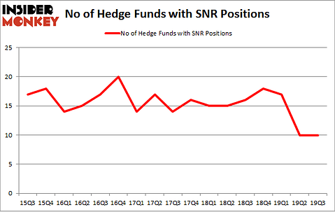 At Q3’s end, a total of 10 of the hedge funds tracked by Insider Monkey were long this stock, a change of 0% from one quarter earlier. On the other hand, there were a total of 16 hedge funds with a bullish position in SNR a year ago. With hedge funds’ positions undergoing their usual ebb and flow, there exists a few notable hedge fund managers who were boosting their holdings significantly (or already accumulated large positions).