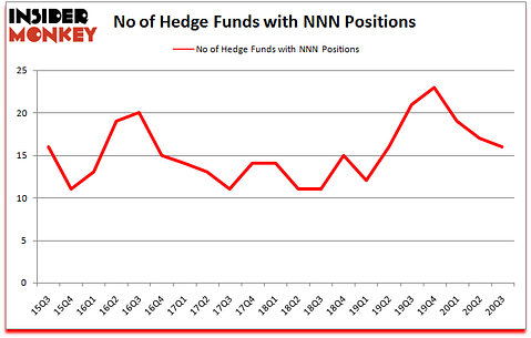 Is NNN a good stock to buy now? National Retail Properties, Inc. (NYSE:NNN) was in 16 hedge funds’ portfolios at the end of the third quarter of 2020. The all time high for this statistic is 23. NNN has seen a decrease in hedge fund interest lately. There were 17 hedge funds in our database with NNN holdings at the end of June. Our calculations also showed that NNN isn’t among the 30 most popular stocks among hedge funds (click for Q3 rankings and see the video for a quick look at the top 5 stocks).