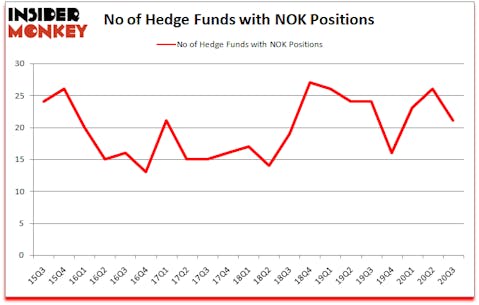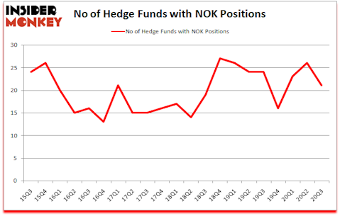 At the end of September, a total of 21 of the hedge funds tracked by Insider Monkey were long this stock, a change of -19% from one quarter earlier. Below, you can check out the change in hedge fund sentiment towards NOK over the last 21 quarters. So, let’s examine which hedge funds were among the top holders of the stock and which hedge funds were making big moves.