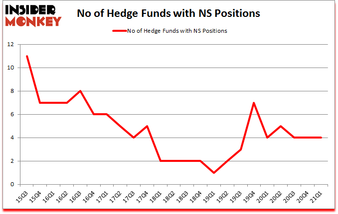 At the end of the first quarter, a total of 4 of the hedge funds tracked by Insider Monkey were long this stock, a change of 0% from one quarter earlier. On the other hand, there were a total of 4 hedge funds with a bullish position in NS a year ago. So, let’s find out which hedge funds were among the top holders of the stock and which hedge funds were making big moves.