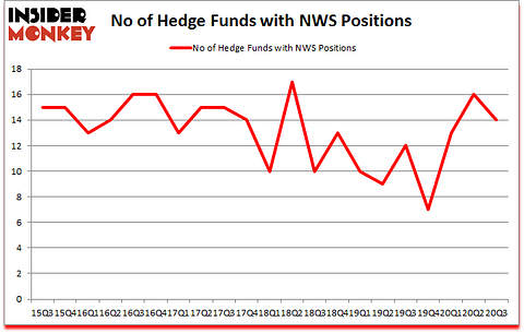 At the end of the third quarter, a total of 14 of the hedge funds tracked by Insider Monkey were long this stock, a change of -13% from the previous quarter. Below, you can check out the change in hedge fund sentiment towards NWS over the last 21 quarters. So, let’s review which hedge funds were among the top holders of the stock and which hedge funds were making big moves.