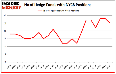 Is NYCB stock a buy? New York Community Bancorp, Inc. (NYSE:NYCB) was in 25 hedge funds’ portfolios at the end of the fourth quarter of 2020. The all time high for this statistic is 28. NYCB investors should be aware of a decrease in support from the world’s most elite money managers in recent months. There were 28 hedge funds in our database with NYCB holdings at the end of September. Our calculations also showed that NYCB isn’t among the 30 most popular stocks among hedge funds (click for Q4 rankings).