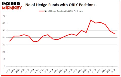 At first quarter’s end, a total of 45 of the hedge funds tracked by Insider Monkey held long positions in this stock, a change of -8% from the previous quarter. The graph below displays the number of hedge funds with bullish position in ORLY over the last 23 quarters. With hedge funds’ sentiment swirling, there exists a select group of key hedge fund managers who were upping their stakes meaningfully (or already accumulated large positions).