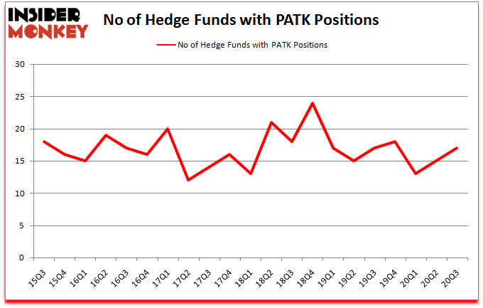 At the end of September, a total of 17 of the hedge funds tracked by Insider Monkey were bullish on this stock, a change of 13% from one quarter earlier. The graph below displays the number of hedge funds with bullish position in PATK over the last 21 quarters. So, let’s see which hedge funds were among the top holders of the stock and which hedge funds were making big moves.