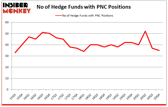 Is PNC stock a buy? The PNC Financial Services Group Inc. (NYSE:PNC) has experienced a decrease in activity from the world’s largest hedge funds of late. The PNC Financial Services Group Inc. (NYSE:PNC) was in 35 hedge funds’ portfolios at the end of the fourth quarter of 2020. The all time high for this statistic is 52. Our calculations also showed that PNC isn’t among the 30 most popular stocks among hedge funds (click for Q4 rankings).