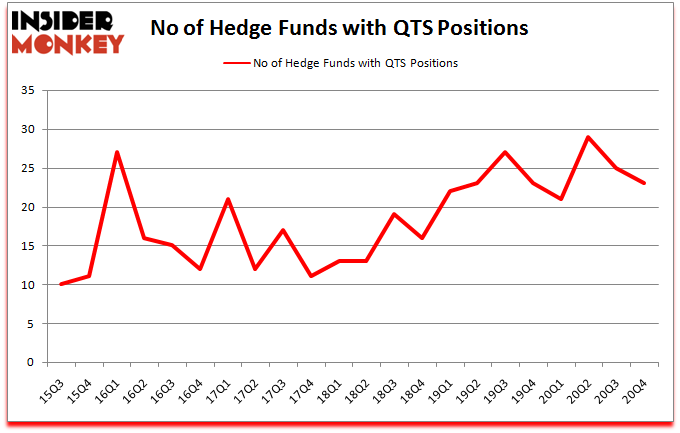 Is QTS stock a buy? Hedge funds were turning less bullish. The number of bullish hedge fund positions were cut by 2 lately. QTS Realty Trust Inc (NYSE:QTS) was in 23 hedge funds’ portfolios at the end of December. The all time high for this statistic is 29. Our calculations also showed that QTS isn’t among the 30 most popular stocks among hedge funds (click for Q4 rankings).