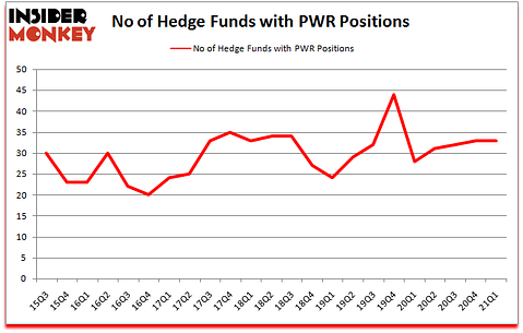 At Q1’s end, a total of 33 of the hedge funds tracked by Insider Monkey were bullish on this stock, a change of 0% from one quarter earlier. The graph below displays the number of hedge funds with bullish position in PWR over the last 23 quarters. So, let’s examine which hedge funds were among the top holders of the stock and which hedge funds were making big moves.
