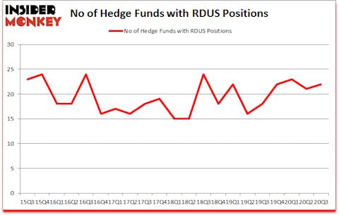 At third quarter’s end, a total of 22 of the hedge funds tracked by Insider Monkey were bullish on this stock, a change of 5% from the second quarter of 2020. Below, you can check out the change in hedge fund sentiment towards RDUS over the last 21 quarters. With hedgies’ positions undergoing their usual ebb and flow, there exists an “upper tier” of notable hedge fund managers who were boosting their holdings meaningfully (or already accumulated large positions).