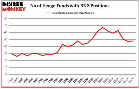 At the end of September, a total of 48 of the hedge funds tracked by Insider Monkey were long this stock, a change of 2% from one quarter earlier. Below, you can check out the change in hedge fund sentiment towards RNG over the last 25 quarters. So, let’s find out which hedge funds were among the top holders of the stock and which hedge funds were making big moves.