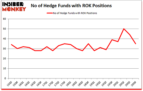 Is ROK stock a buy? Rockwell Automation Inc. (NYSE:ROK) investors should be aware of a decrease in enthusiasm from smart money recently. Rockwell Automation Inc. (NYSE:ROK) was in 35 hedge funds’ portfolios at the end of December. The all time high for this statistic is 50. Our calculations also showed that ROK isn’t among the 30 most popular stocks among hedge funds (click for Q4 rankings).