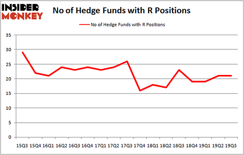 At Q3’s end, a total of 21 of the hedge funds tracked by Insider Monkey were bullish on this stock, a change of 0% from the second quarter of 2019. Below, you can check out the change in hedge fund sentiment towards R over the last 17 quarters. With the smart money’s positions undergoing their usual ebb and flow, there exists a select group of noteworthy hedge fund managers who were increasing their stakes significantly (or already accumulated large positions).