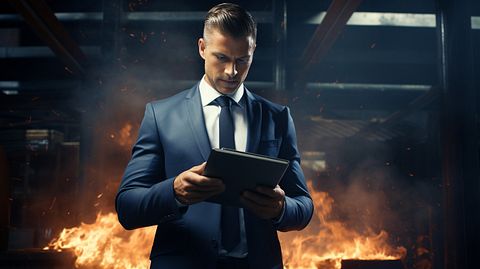 An insurance agent with a tablet device accessing a technology-enabled platform.