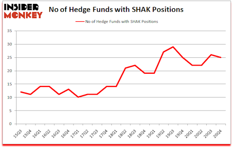 Is SHAK stock a buy? Shake Shack Inc (NYSE:SHAK) was in 25 hedge funds’ portfolios at the end of December. The all time high for this statistic is 29. SHAK has seen a decrease in activity from the world’s largest hedge funds lately. There were 26 hedge funds in our database with SHAK positions at the end of the third quarter. Our calculations also showed that SHAK isn’t among the 30 most popular stocks among hedge funds (click for Q4 rankings).