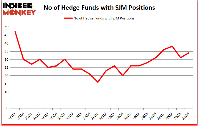 Is SJM stock a buy? The J.M. Smucker Company (NYSE:SJM) has experienced an increase in hedge fund sentiment lately. The J.M. Smucker Company (NYSE:SJM) was in 34 hedge funds’ portfolios at the end of December. The all time high for this statistic is 47. There were 31 hedge funds in our database with SJM holdings at the end of September. Our calculations also showed that SJM isn’t among the 30 most popular stocks among hedge funds (click for Q4 rankings).