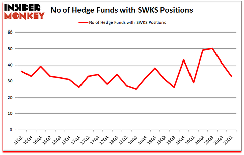 Is SWKS a good stock to buy? Skyworks Solutions Inc (NASDAQ:SWKS) was in 33 hedge funds’ portfolios at the end of the first quarter of 2021. The all time high for this statistic is 50. SWKS investors should be aware of a decrease in enthusiasm from smart money lately. There were 41 hedge funds in our database with SWKS holdings at the end of December. Our calculations also showed that SWKS isn’t among the 30 most popular stocks among hedge funds (click for Q1 rankings).