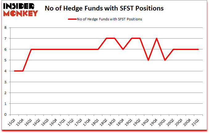 At Q1’s end, a total of 6 of the hedge funds tracked by Insider Monkey were long this stock, a change of 0% from the previous quarter. Below, you can check out the change in hedge fund sentiment towards SFST over the last 23 quarters. So, let’s see which hedge funds were among the top holders of the stock and which hedge funds were making big moves.