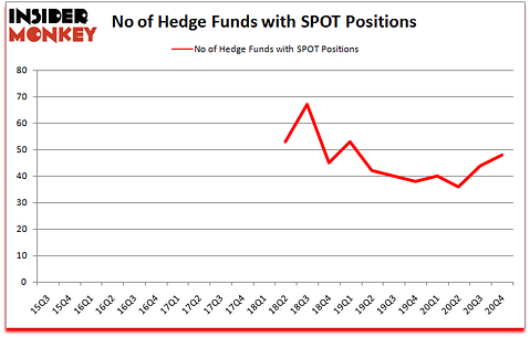Is SPOT stock a buy or sell? Spotify Technology S.A. (NYSE:SPOT) was in 48 hedge funds’ portfolios at the end of the fourth quarter of 2020. The all time high for this statistic is 67. SPOT investors should pay attention to an increase in enthusiasm from smart money recently. There were 44 hedge funds in our database with SPOT positions at the end of the third quarter. Our calculations also showed that SPOT isn’t among the 30 most popular stocks among hedge funds (click for Q4 rankings).