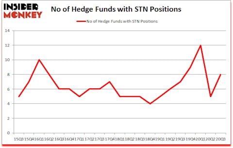 At the end of September, a total of 8 of the hedge funds tracked by Insider Monkey were bullish on this stock, a change of 60% from the previous quarter. Below, you can check out the change in hedge fund sentiment towards STN over the last 21 quarters. So, let’s review which hedge funds were among the top holders of the stock and which hedge funds were making big moves.