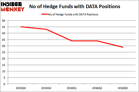 We have been waiting for this for a year and finally the third quarter ended up showing a nice bump in the performance of small-cap stocks. Both the S&P 500 and Russell 2000 were up since the end of the second quarter, but small-cap stocks outperformed the large-cap stocks by double digits. This is important for hedge funds, which are big supporters of small-cap stocks, because their investors started pulling some of their capital out due to poor recent performance. It is very likely that equity hedge funds will deliver better risk adjusted returns in the second half of this year. In this article we are going to look at how this recent market trend affected the sentiment of hedge funds towards Tableau Software Inc (NYSE:DATA), and what that likely means for the prospects of the company and its stock.