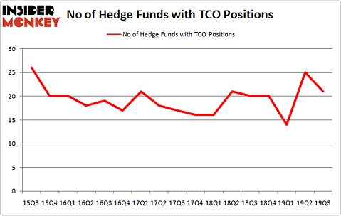 At the end of the third quarter, a total of 21 of the hedge funds tracked by Insider Monkey were long this stock, a change of -16% from one quarter earlier. By comparison, 20 hedge funds held shares or bullish call options in TCO a year ago. So, let’s find out which hedge funds were among the top holders of the stock and which hedge funds were making big moves.