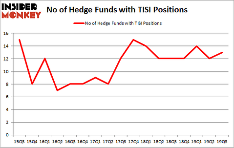 Heading into the fourth quarter of 2019, a total of 13 of the hedge funds tracked by Insider Monkey were bullish on this stock, a change of 8% from the previous quarter. On the other hand, there were a total of 12 hedge funds with a bullish position in TISI a year ago. So, let’s check out which hedge funds were among the top holders of the stock and which hedge funds were making big moves.