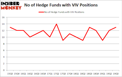 Telefonica Brasil SA (NYSE:VIV) was in 13 hedge funds’ portfolios at the end of September. VIV shareholders have witnessed an increase in hedge fund interest of late. There were 12 hedge funds in our database with VIV holdings at the end of the previous quarter. Our calculations also showed that VIV isn’t among the 30 most popular stocks among hedge funds (click for Q3 rankings and see the video below for Q2 rankings).