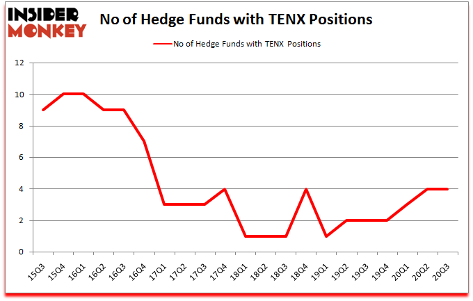Heading into the fourth quarter of 2020, a total of 4 of the hedge funds tracked by Insider Monkey were bullish on this stock, a change of 0% from the second quarter of 2020. Below, you can check out the change in hedge fund sentiment towards TENX over the last 21 quarters. With hedgies’ sentiment swirling, there exists an “upper tier” of notable hedge fund managers who were increasing their holdings meaningfully (or already accumulated large positions).
