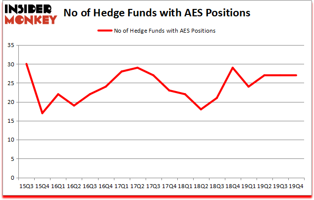 Heading into the first quarter of 2020, a total of 27 of the hedge funds tracked by Insider Monkey held long positions in this stock, a change of 0% from the previous quarter. Below, you can check out the change in hedge fund sentiment towards AES over the last 18 quarters. So, let’s check out which hedge funds were among the top holders of the stock and which hedge funds were making big moves.