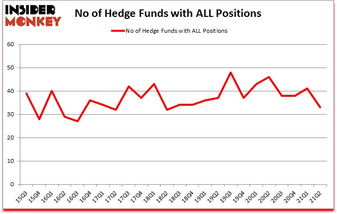 Is The Allstate Corporation (NYSE:ALL) a buy here? The best stock pickers were in a pessimistic mood. The number of bullish hedge fund bets dropped by 8 lately. The Allstate Corporation (NYSE:ALL) was in 33 hedge funds’ portfolios at the end of the second quarter of 2021. The all time high for this statistic is 48. Our calculations also showed that ALL isn’t among the 30 most popular stocks among hedge funds (click for Q2 rankings).