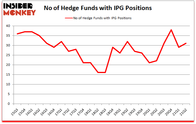 Is The Interpublic Group of Companies Inc (NYSE:IPG) a buy right now? The smart money was in a bullish mood. The number of bullish hedge fund bets went up by 2 recently. The Interpublic Group of Companies Inc (NYSE:IPG) was in 31 hedge funds’ portfolios at the end of June. The all time high for this statistic is 38. Our calculations also showed that IPG isn’t among the 30 most popular stocks among hedge funds (click for Q2 rankings).