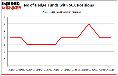 At the end of the first quarter, a total of 4 of the hedge funds tracked by Insider Monkey held long positions in this stock, a change of 0% from one quarter earlier. By comparison, 6 hedge funds held shares or bullish call options in SCX a year ago. With hedgies’ positions undergoing their usual ebb and flow, there exists a few notable hedge fund managers who were upping their stakes significantly (or already accumulated large positions).