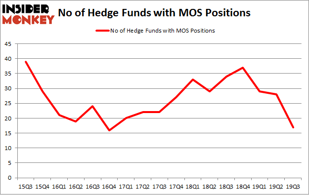 Heading into the fourth quarter of 2019, a total of 17 of the hedge funds tracked by Insider Monkey were long this stock, a change of -39% from one quarter earlier. Below, you can check out the change in hedge fund sentiment towards MOS over the last 17 quarters. With hedgies’ positions undergoing their usual ebb and flow, there exists a select group of key hedge fund managers who were adding to their holdings significantly (or already accumulated large positions).