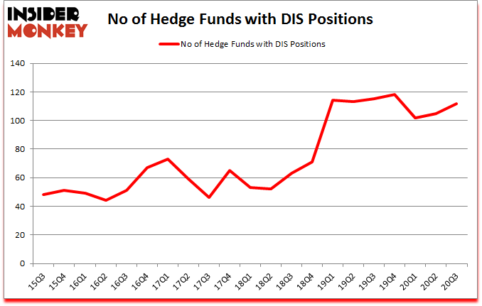 The Walt Disney Company (NYSE:DIS) has seen an increase in enthusiasm from smart money of late. The Walt Disney Company (NYSE:DIS) was in 112 hedge funds’ portfolios at the end of September. The all time high for this statistics is 118. Our calculations also showed that DIS ranked 14th among the 30 most popular stocks among hedge funds (click for Q3 rankings and see the video for a quick look at the top 5 stocks).