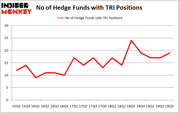 Heading into the fourth quarter of 2019, a total of 19 of the hedge funds tracked by Insider Monkey were bullish on this stock, a change of 12% from the second quarter of 2019. By comparison, 24 hedge funds held shares or bullish call options in TRI a year ago. So, let’s find out which hedge funds were among the top holders of the stock and which hedge funds were making big moves.
