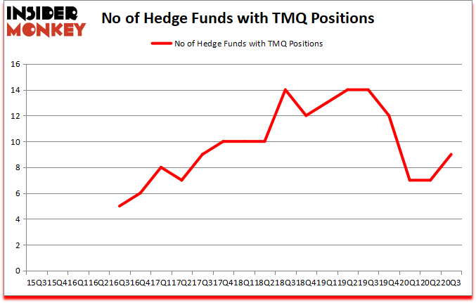 At third quarter’s end, a total of 9 of the hedge funds tracked by Insider Monkey were bullish on this stock, a change of 29% from one quarter earlier. By comparison, 14 hedge funds held shares or bullish call options in TMQ a year ago. So, let’s examine which hedge funds were among the top holders of the stock and which hedge funds were making big moves.