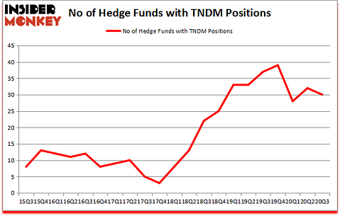 At the end of September, a total of 30 of the hedge funds tracked by Insider Monkey held long positions in this stock, a change of -6% from the previous quarter. The graph below displays the number of hedge funds with bullish position in TNDM over the last 21 quarters. So, let’s see which hedge funds were among the top holders of the stock and which hedge funds were making big moves.